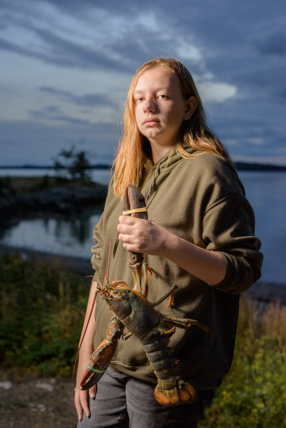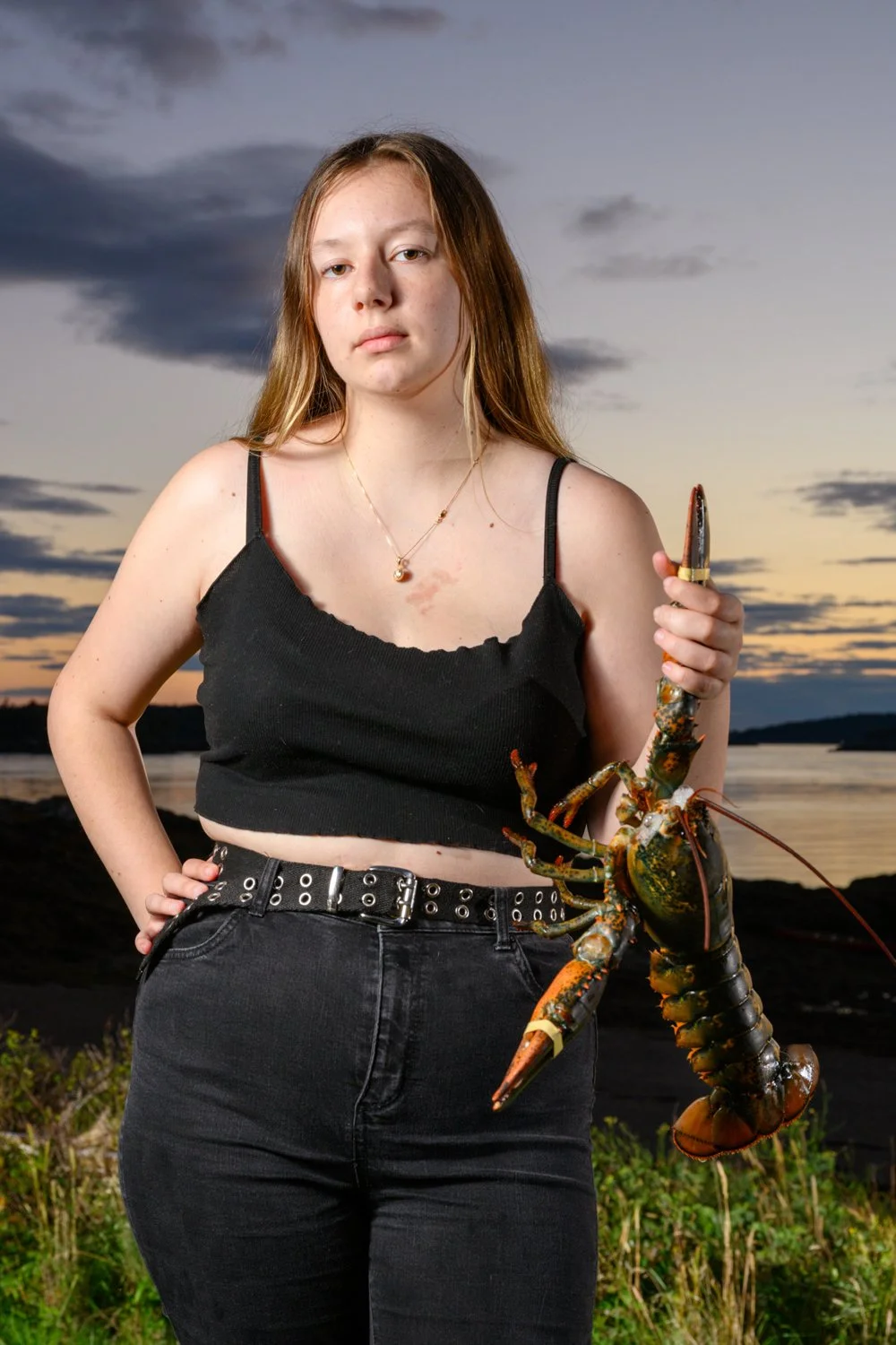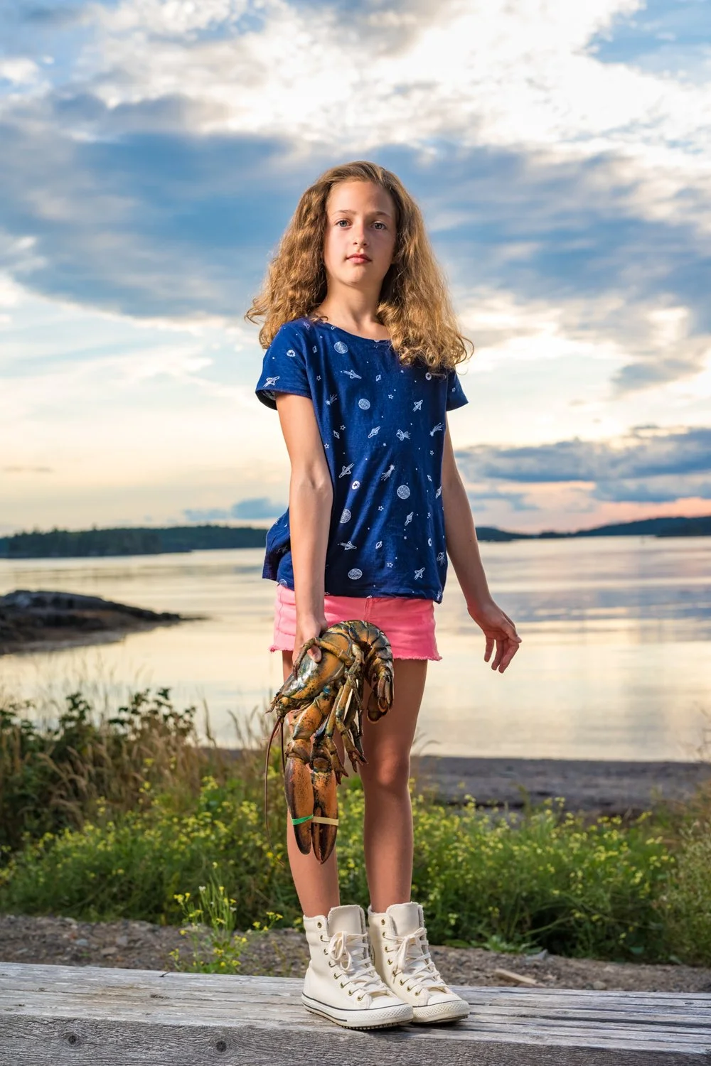 Sea Change is a ten year series of annual portraits that began as a study of 17 girls growing up in a small Atlantic Canadian town. Standing by the Bay of Fundy’s vast, tidal expanse, the subjects face the camera as they take stock of and pose with a lobster. Some of the subjects appear cautious, others proud, and some nonchalant—subtly revealing facets of their character.