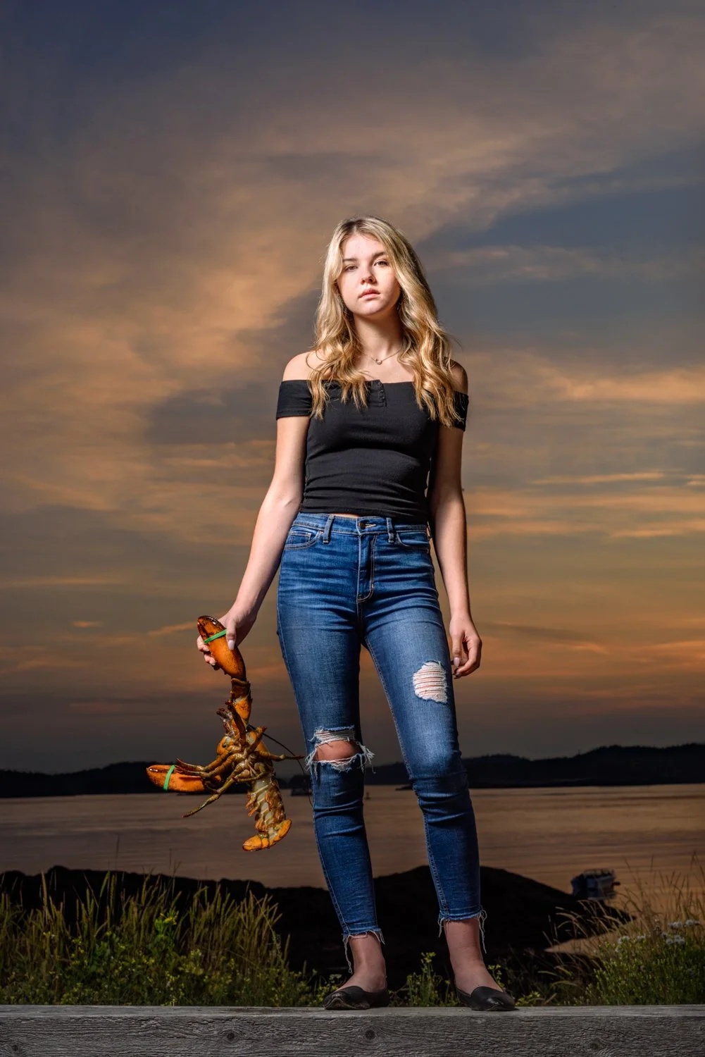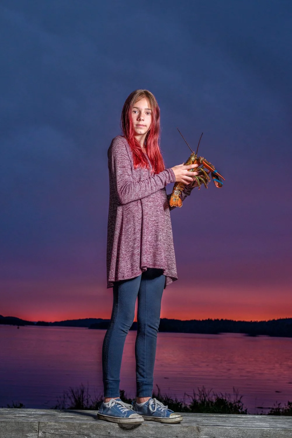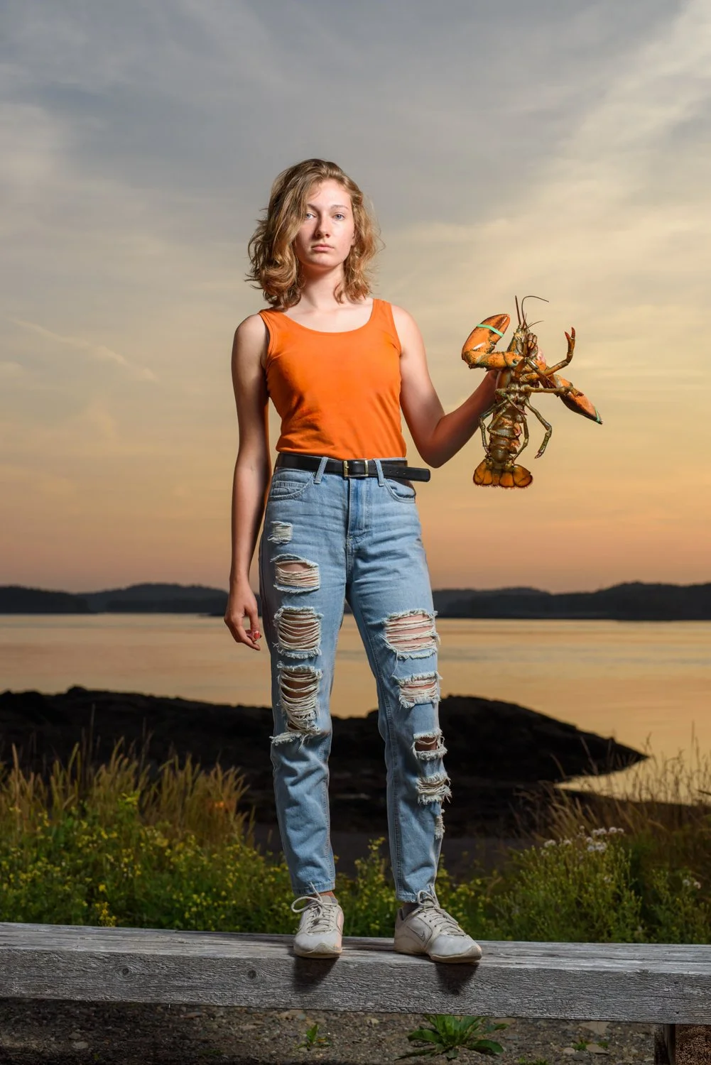 Sea Change is a ten year series of annual portraits that began as a study of 17 girls growing up in a small Atlantic Canadian town. Standing by the Bay of Fundy’s vast, tidal expanse, the subjects face the camera as they take stock of and pose with a lobster. Some of the subjects appear cautious, others proud, and some nonchalant—subtly revealing facets of their character.